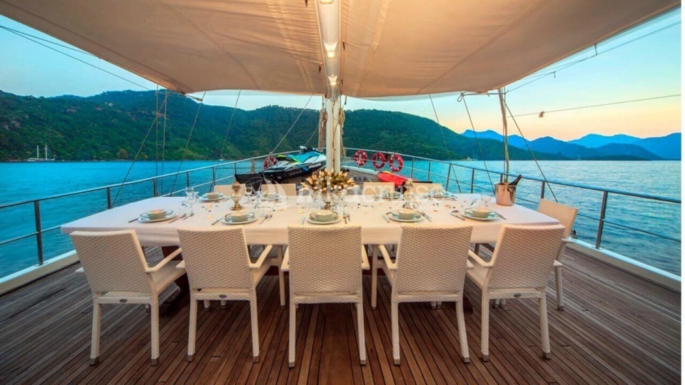 A VIP Menu invites the gulet guests to live aboard in a manner that they aspire to, and guests’ tastes and expectations will be more than met by an exceptional range of dishes prepared from the very best seasonal foods, and luxury choice of seafood such as lobsters and other produce as wished for. Superb dishes and classic Turkish cuisine will make each meal memorable.